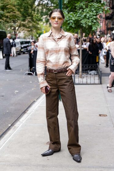 The Gilded Age wasn’t involved with the Emmys this year — god willing it will be next time; the timing of this drop was NOT convenient the eligibility window, in terms of people’s memories — so Louisa Jacobson didn’t have the Emmys on her calendar. Instead, she spent her time doing what Marian Brook would never: sauntering around New York in slim pants.