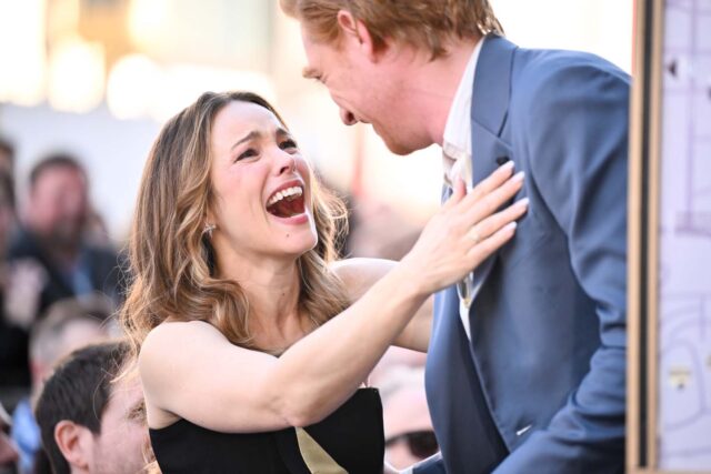 These stars on the walk of fame are absolutely PR opportunities now — Rachel is getting hers in conjunction with the opening of her new movie where she hates her boss and then ends up getting to torture him on a desert island; the dream!!!! (Dylan O’Brien, who plays said boss, attended this event, in fact) — but I’m sure it’s still a massive thrill. Rachel brought her family, her co-star and director attended, and the speech (???) was given by….former co-star Domhall Gleeson, fromĀ About Time, a WONDERFUL movie that didn’t get enough love when it was out, and which has never failed to make me SOB MY EYES OUT, my GOD. Anyway, she seems as excited to see him as I was. (He may also be doing a little PR forĀ The Paper, which is charming and will not make you cry.) Let’s take a closer look.