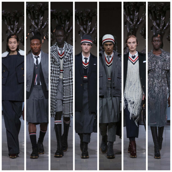 Presented in partnership with Vogue’s dapper relative GQ as a warm-up event for this year’s Super Bowl, Browne’s GQ Bowl runway featured NFL stars Marcus Allen, Justin Jefferson, and DeAndre Hopkins. The Browne-clad crowd watching them walk was populated with cultural players including Teyana Taylor and Francois Arnaud. Given the circumstances, Browne could have delivered a gridiron-themed show that was all fireworks, pigskin, and cheerleaders. Instead, he took his audience to the gates of hell.