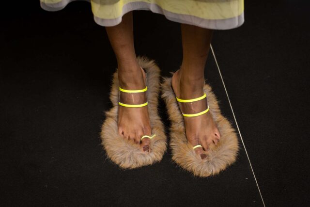We paged through a lot of runway shows this year, but we don’t always get right up close to the accessories, and my favorites tend to be the shoes. Because they are so often my least favorite. Why is anyone zip-tying wookiee clippings to people’s feet?!?