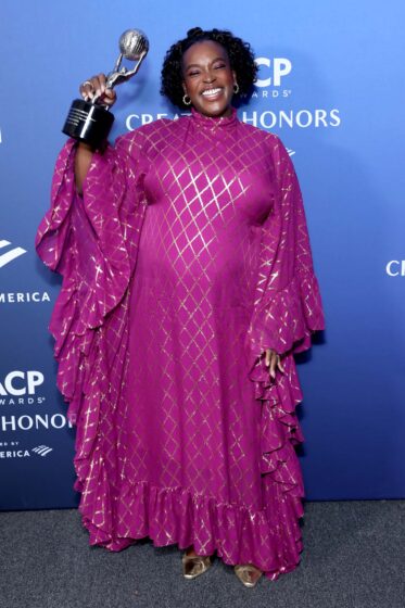 The NAACP Image Awards are on Saturday, which is shitty timing with Sunday’s SAG Awards and I wish they had their own weekend. Last night they did the non-televised ceremony, and we had some dramatic outfits, including this resplendent caftan on Wunmi Mosaku (seen here accepting for the Sinners ensemble). I don’t know how she does it, but she makes being pregnant during awards season look super fun rather than exhausting.